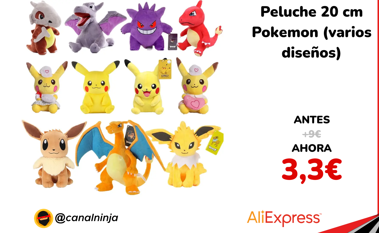 🔹 Peluche 20 cm Pokemon (varios diseños) solo 3,3€ ❗️⚔️️ (PVP: +9€)
