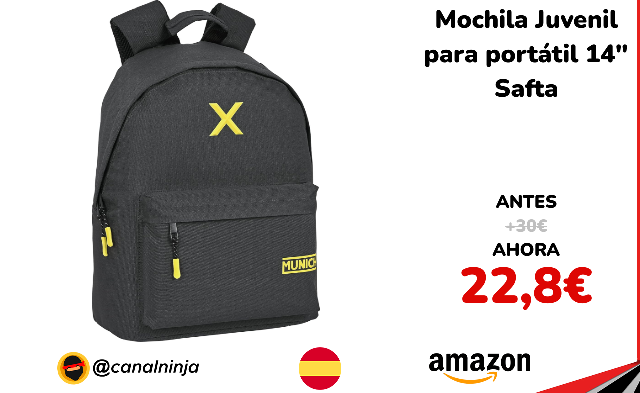 🔹 Mochila Juvenil para portátil 14" Safta solo 22,8€ ❗️⚔️️ (PVP: +30€)