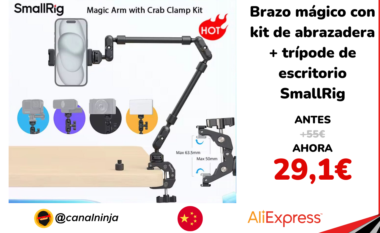 🔹 Brazo mágico con kit de abrazadera + trípode de escritorio SmallRig solo 29,1€ ❗️⚔️️ (PVP: +55€)
