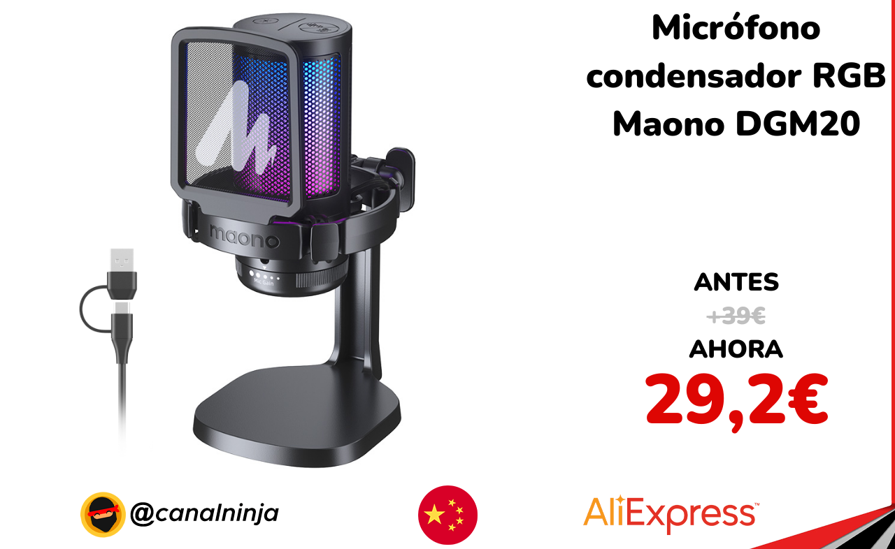 🔹 Micrófono condensador RGB Maono DGM20 solo 29,2€ ❗️⚔️️ (PVP: +39€)