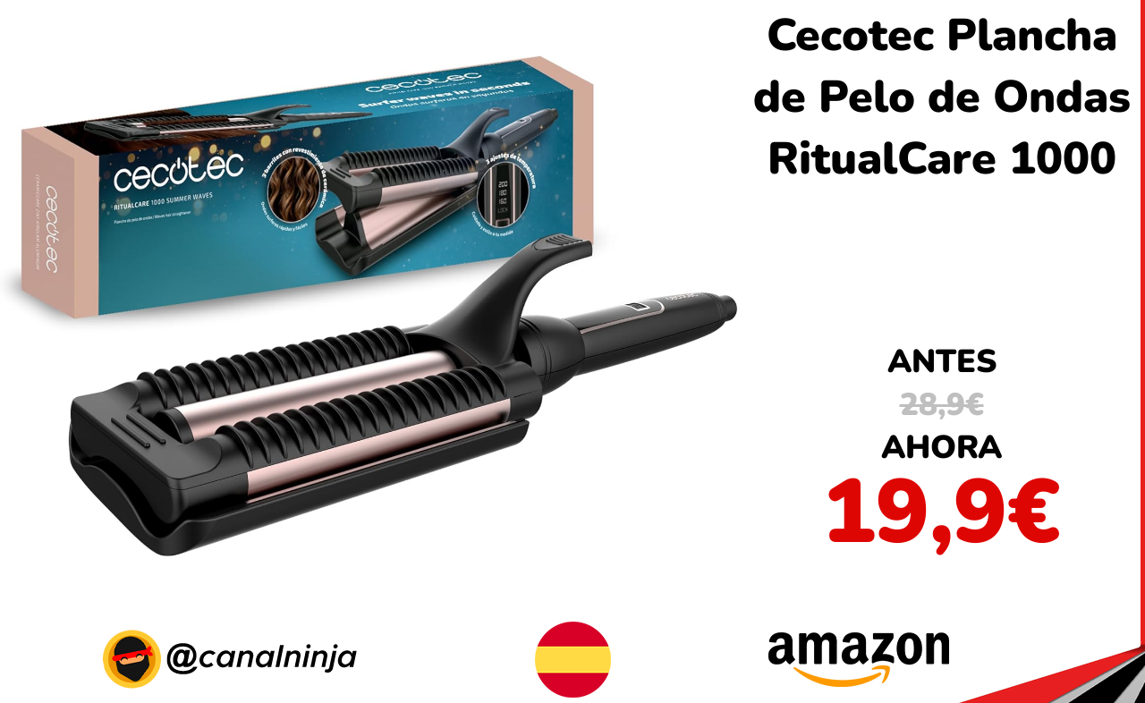 🔹 Cecotec Plancha de Pelo de Ondas RitualCare 1000 solo 19,9€ ❗️⚔️️ (PVP: 28,9€)