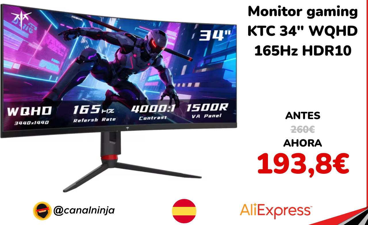🔹 Monitor gaming KTC 34" WQHD 165Hz HDR10 solo 193,8€ ❗️⚔️️ (PVP: 260€)