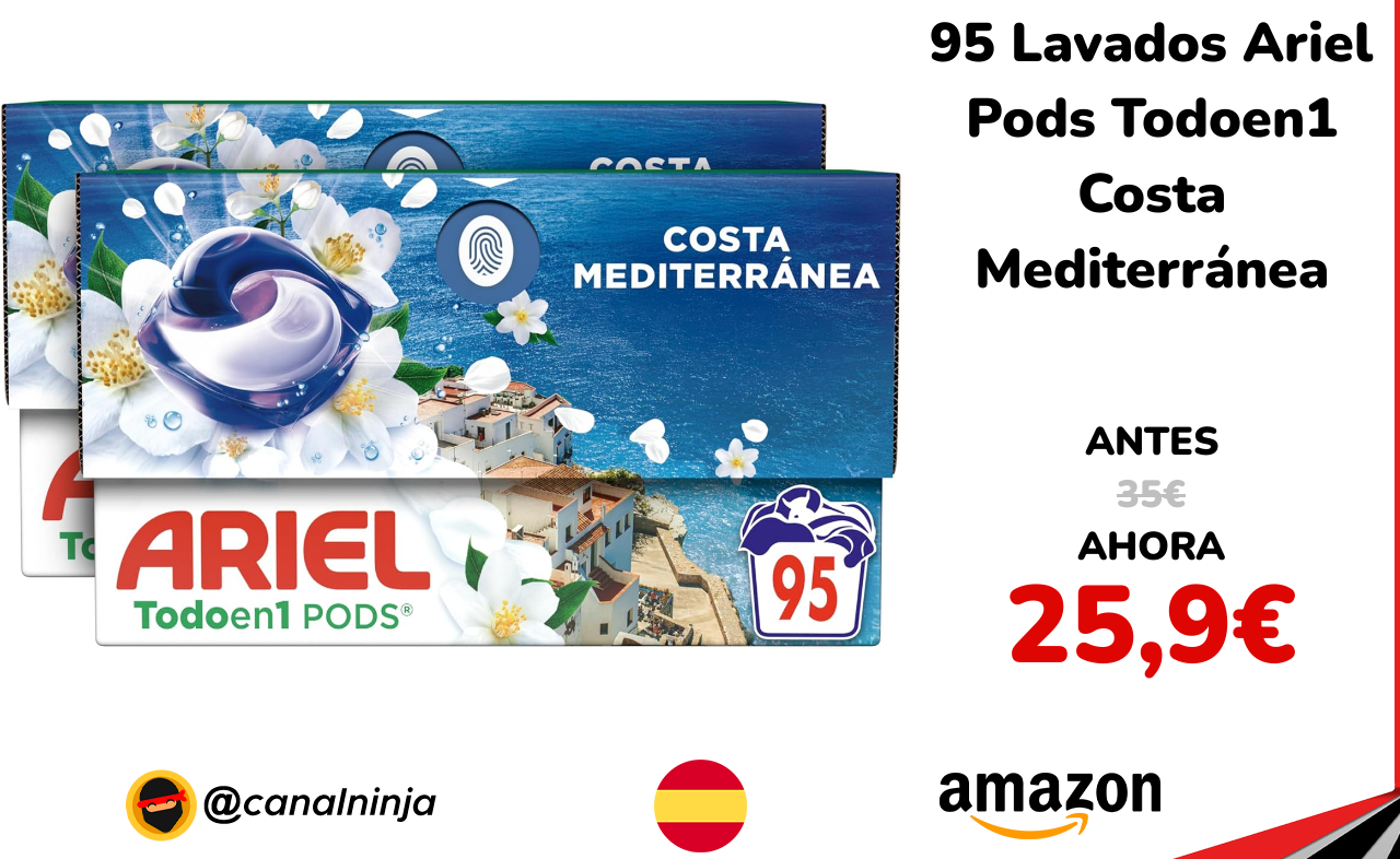 🔹 95 Lavados Ariel Pods Todoen1 Costa Mediterránea solo 25,9€ ❗️⚔️️ (PVP: 35€)