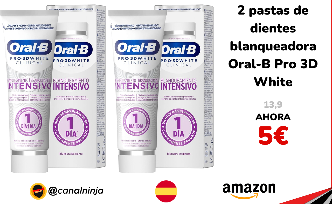 🔹 2 pastas de dientes blanqueadora Oral-B Pro 3D White solo 5€ ❗️⚔️️ (PVP: 13,9)