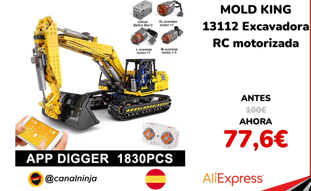 🔹 MOLD KING 13112 Excavadora RC motorizada solo 77,6€ ❗️⚔️️ (PVP: 100€)