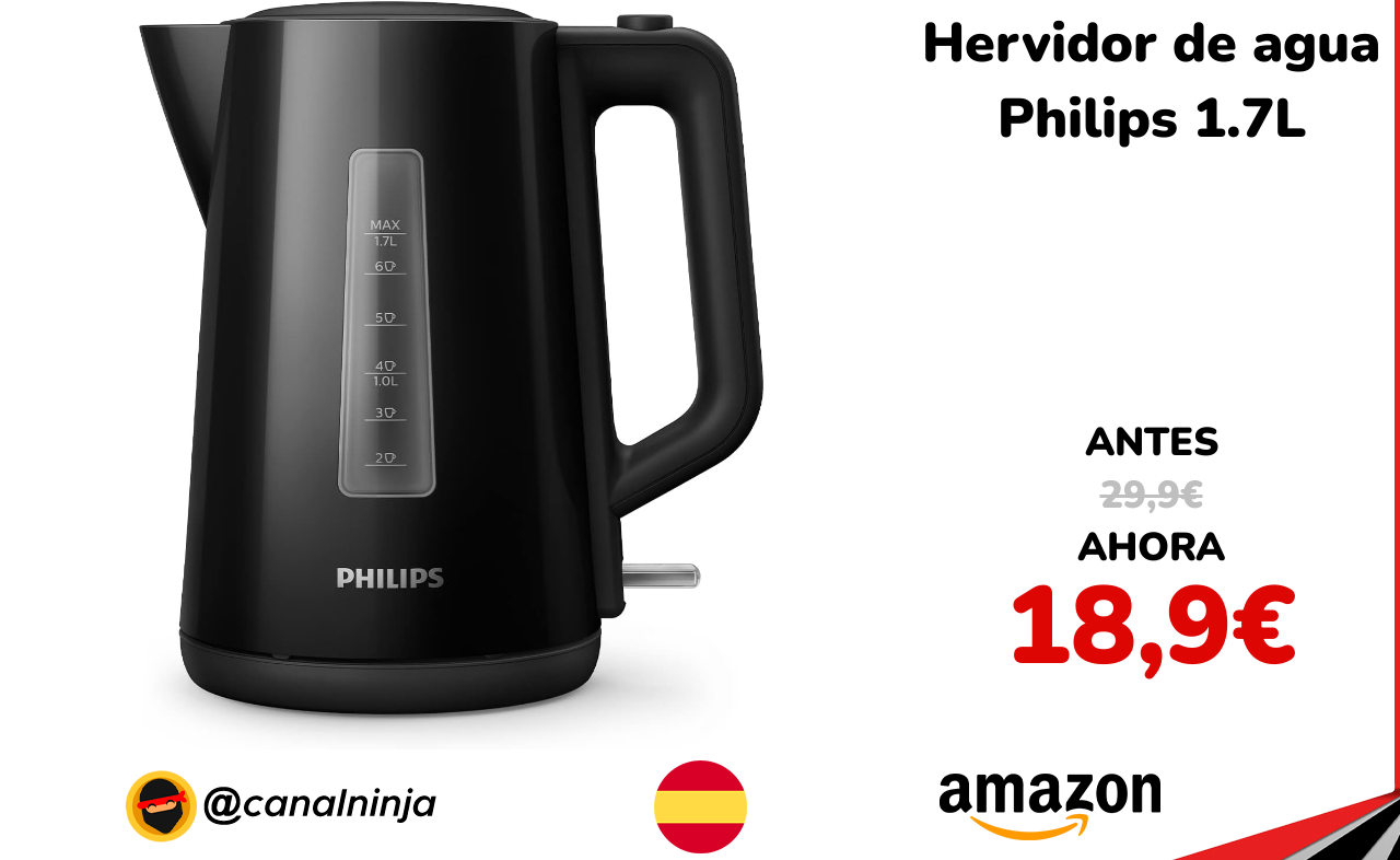 🔹 Hervidor de agua Philips 1.7L solo 18,9€ ❗️⚔️️ (PVP: 29,9€)