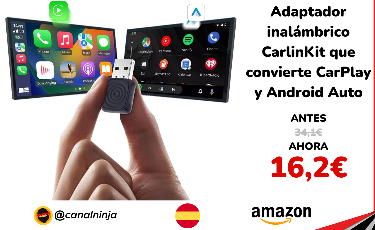 🔹 Adaptador inalámbrico CarlinKit que convierte CarPlay y Android Auto solo 16,2€ ❗️⚔️️ (PVP: 34,1€)