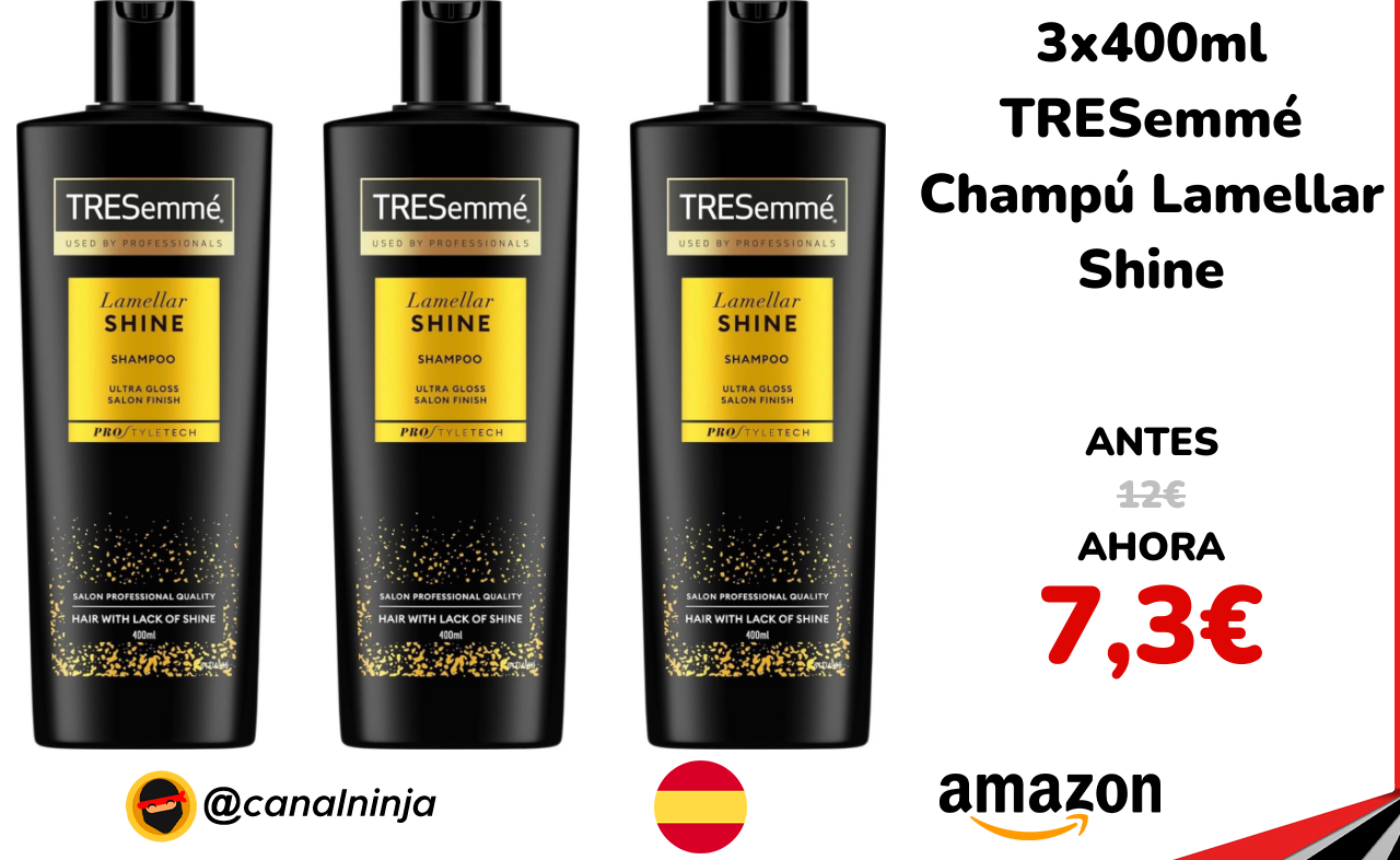 🔹 3x400ml TRESemmé Champú Lamellar Shine solo 7,3€ ❗️⚔️️ (PVP: 12€)