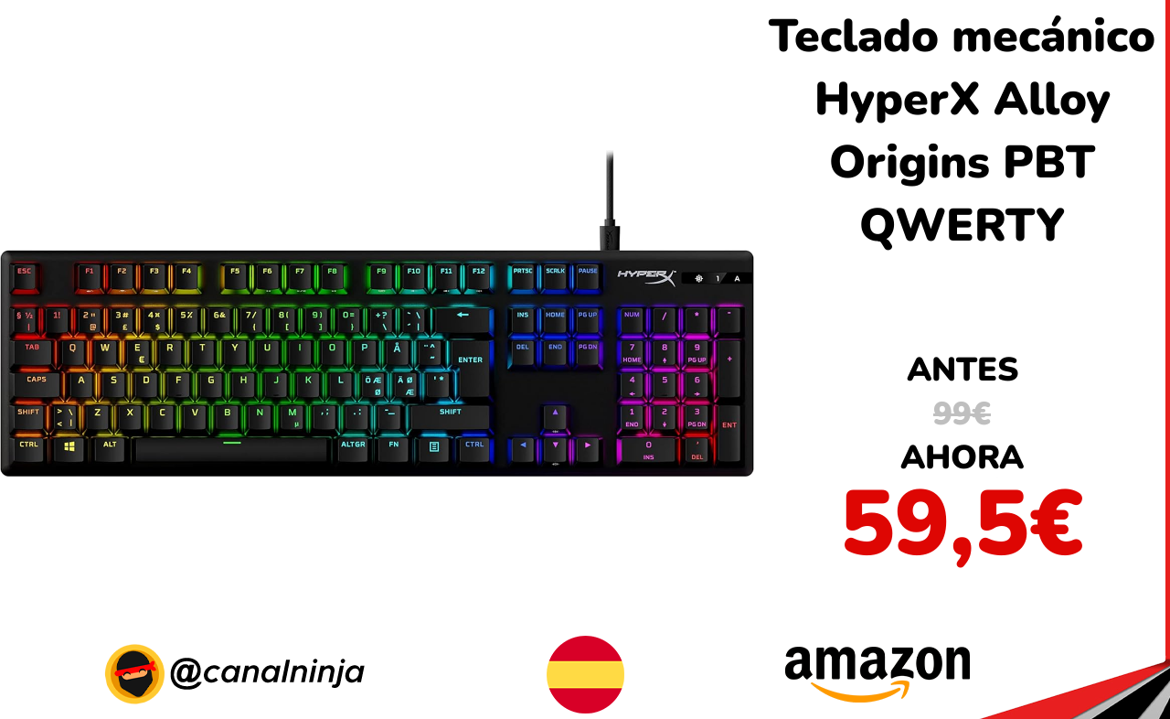 🔹 Teclado mecánico HyperX Alloy Origins PBT QWERTY solo 59,5€ ❗️⚔️️ (PVP: 99€)