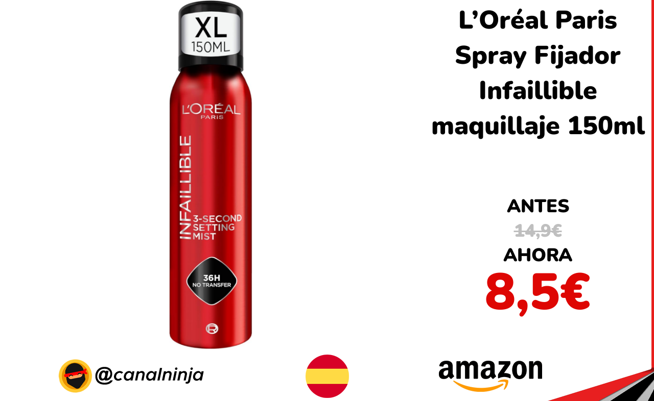 🔹 L’Oréal Paris Spray Fijador Infaillible maquillaje 150ml solo 8,5€ ❗️⚔️️ (PVP: 14,9€)