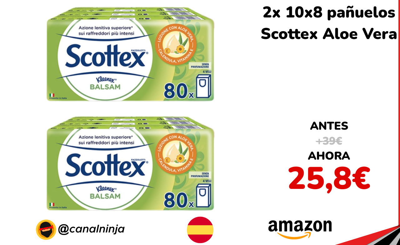 🔹 2x 10x8 pañuelos Scottex Aloe Vera solo 25,8€ ❗️⚔️️ (PVP: +39€)