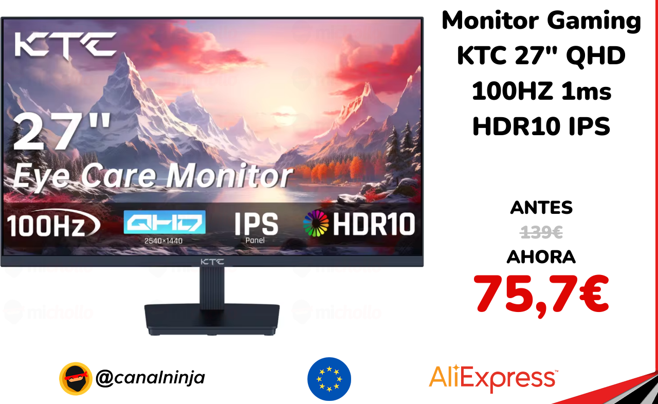 🔹 Monitor Gaming KTC 27" QHD 100HZ 1ms HDR10 IPS solo 75,7€ ❗️⚔️️ (PVP: 139€)