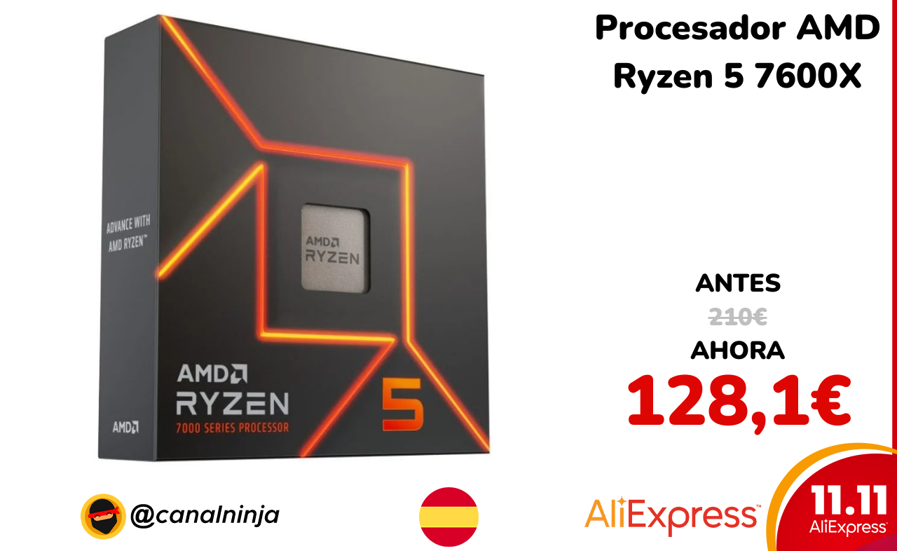 🔹 Procesador AMD Ryzen 5 7600X solo 128,1€ ❗️⚔️️ (PVP: 210€)