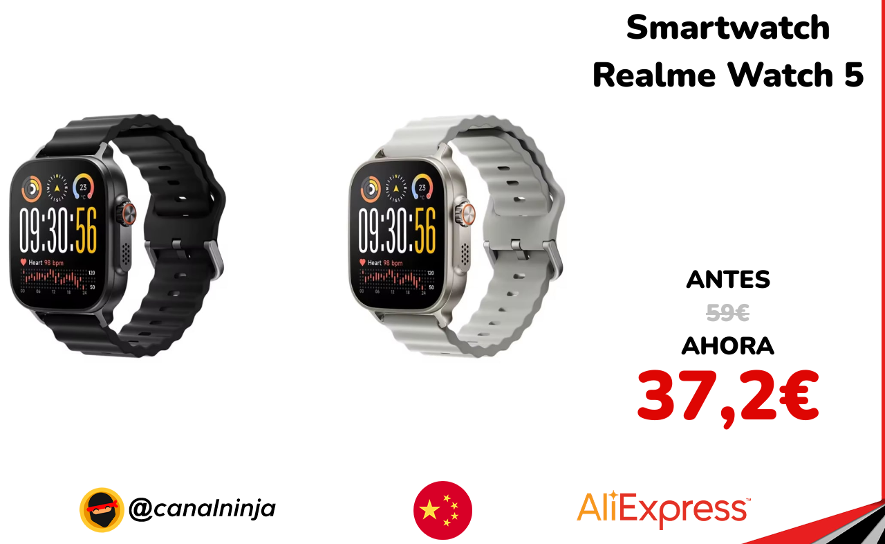 🔹 Smartwatch Realme Watch 5 solo 37,2€ ❗️⚔️️ (PVP: 59€)