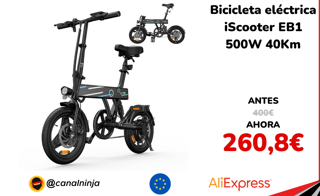 🔹 Bicicleta eléctrica iScooter EB1 500W 40Km solo 260,8€ ❗️⚔️️ (PVP: 400€)