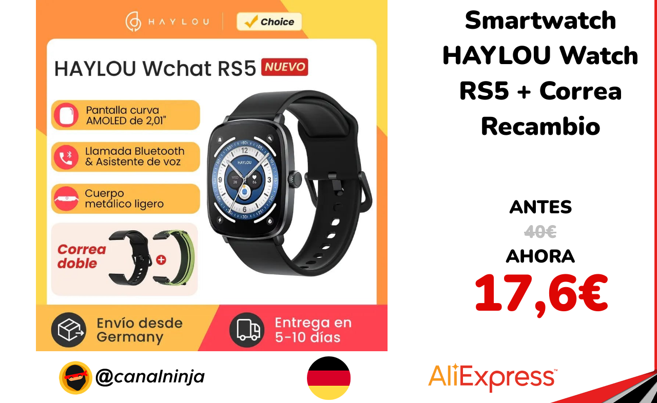 🔹 Smartwatch HAYLOU Watch RS5 + Correa Recambio solo 17,6€ ❗️⚔️️ (PVP: 40€)
