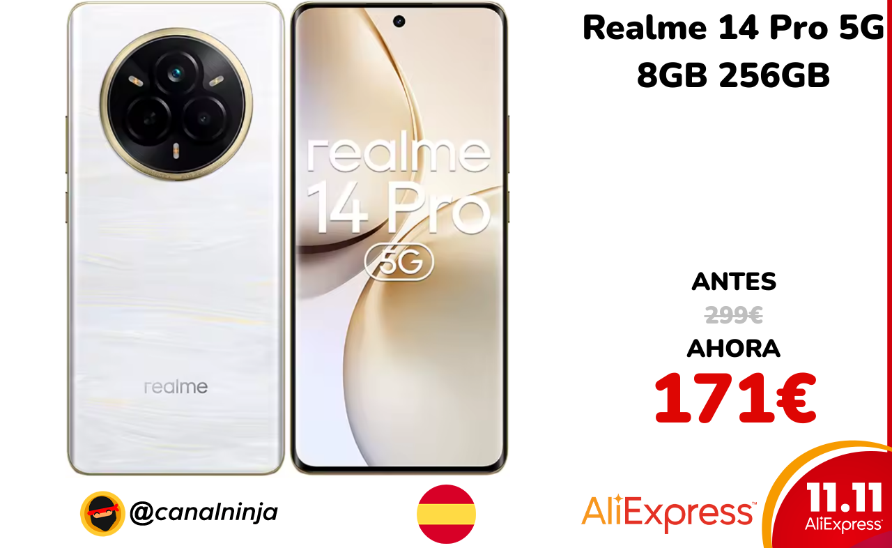 🔹 Realme 14 Pro 5G 8GB 256GB solo 171€ ❗️⚔️️ (PVP: 299€)
