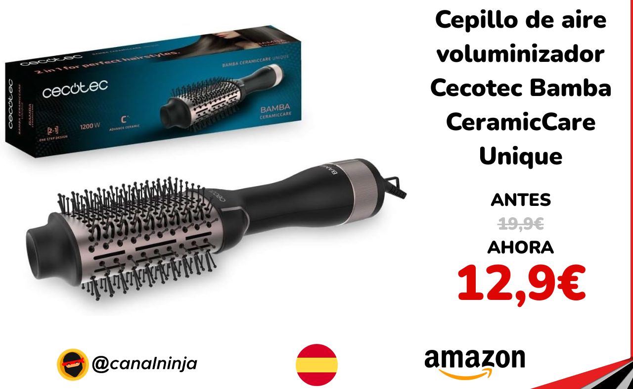 🔹 Cepillo de aire voluminizador Cecotec Bamba CeramicCare Unique solo 12,9€ ❗️⚔️️ (PVP: 19,9€)