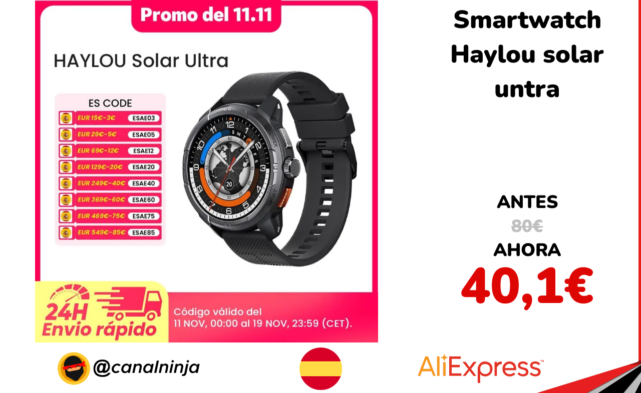 🔹 Smartwatch Haylou solar untra solo 40,1€ ❗️⚔️️ (PVP: 80€)