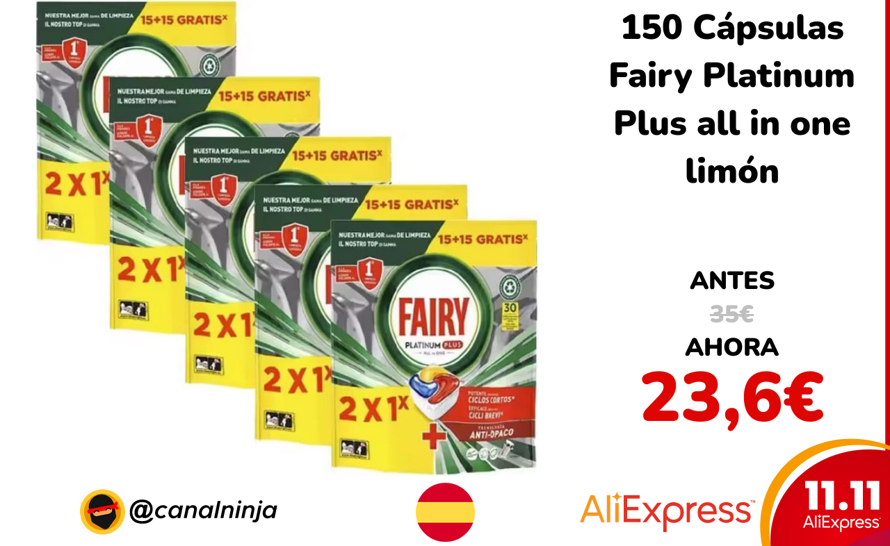 🔹 150 Cápsulas Fairy Platinum Plus all in one limón solo 23,6€ ❗️⚔️️ (PVP: 35€)