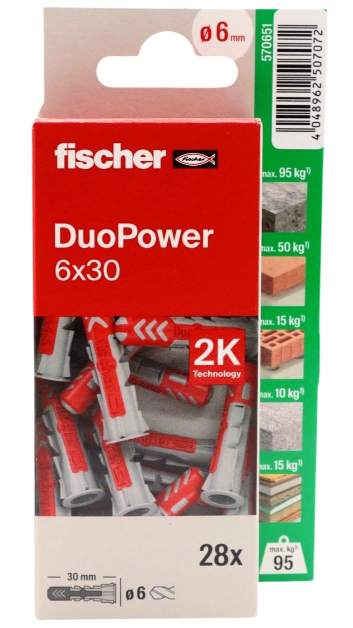 ✴️fischer - Duopower 6x30-28U, Tacos para pared multimaterial, sirven para Colgar Bicicletas, Cuadros, Armarios, Soportes de Televisión, Estanterías, Muebles. #Publicidad