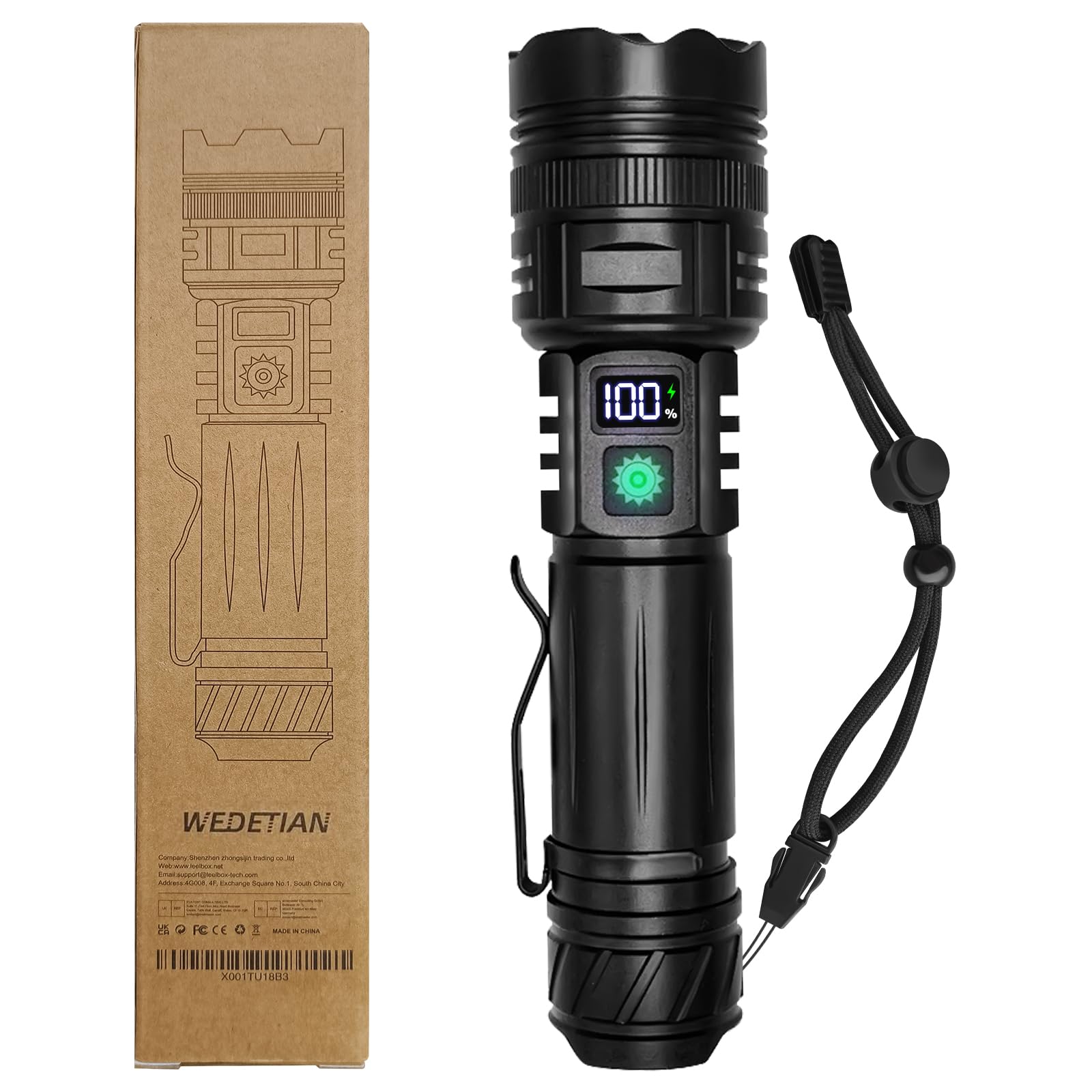 ✴️Linterna LED Alta Potencia 30000 Lúmenes, Recargable USB Táctica Militar XHP70.2 Con Zoom y COB, IPX67 Impermeable 5 Modos Portátil (1 Pieza) #Publicidad