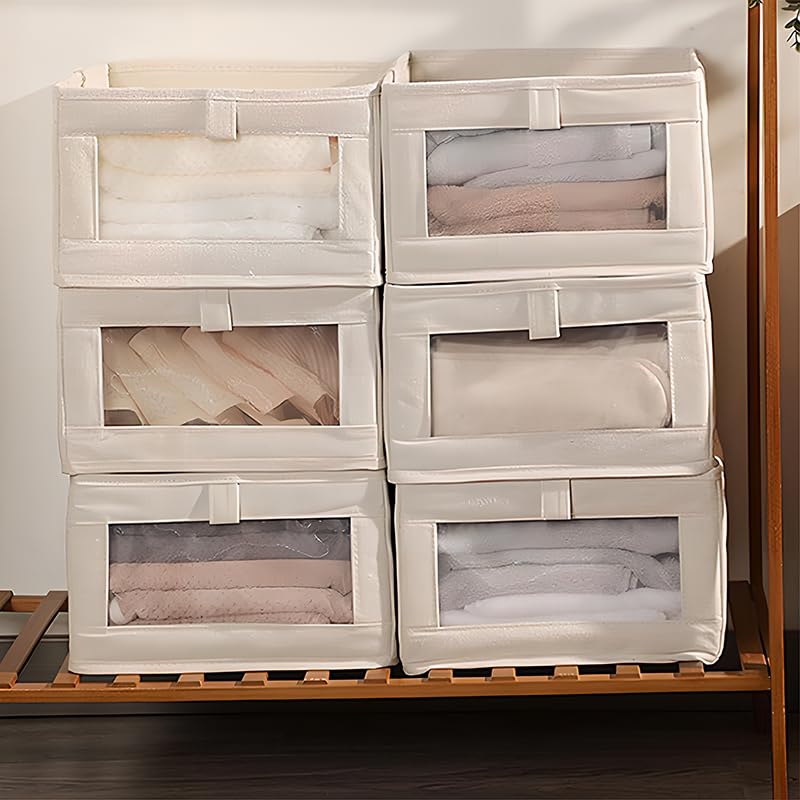✴️Contenedores plegables de almacenamiento de ropa, organizador de armario de lino con asas y ventana, cestas de almacenamiento para organizar ropa, libros de juguetes, 15.7 x 10.6 x 6.7 pulgadas, color #Publicidad