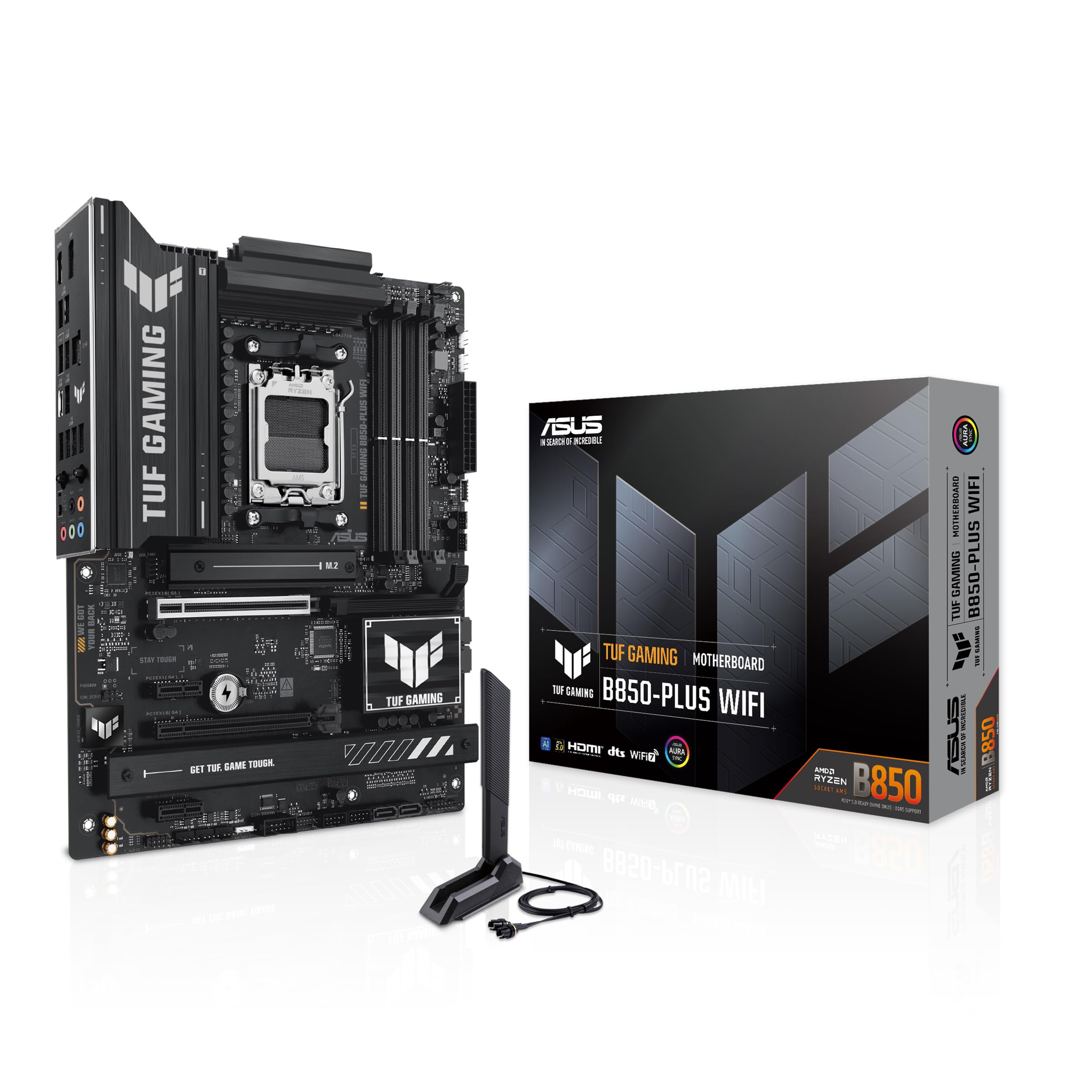 ✴️ASUS TUF GAMING B850-PLUS WIFI - Placa base AMD ATX, 14+2+1 etapas de potencia DrMOS 80A, DDR5, PCIe 5.0, 3 ranuras M.2, WiFi 7, Realtek 2.5Gb Ethernet, DisplayPort, HDMI, USB 20Gbps Tipo-C, Aura Sync #Publicidad