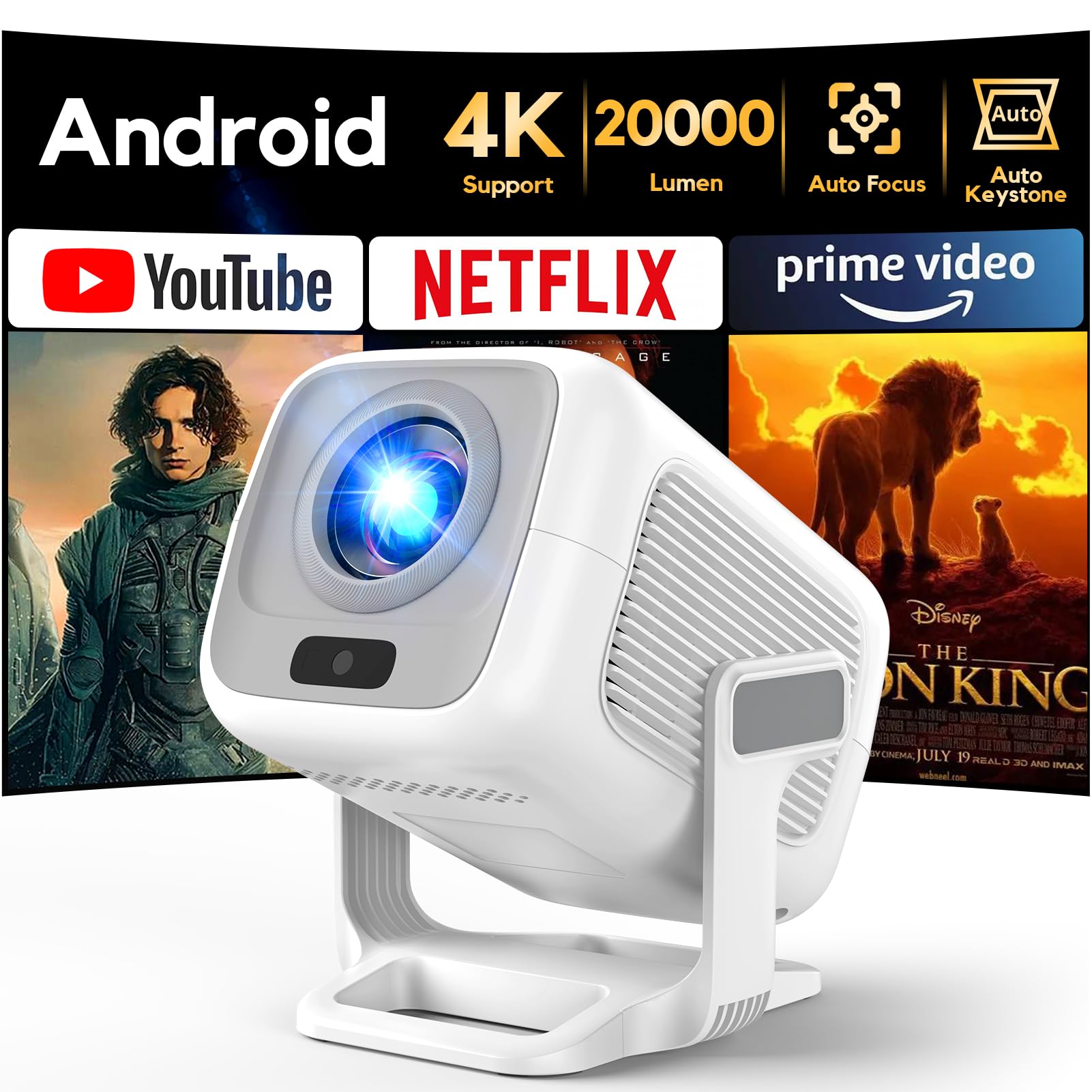 ✴️Proyector 4K [Apps Integrada & Auto Focus/Keystone] 2025 Upgraded AKIYO O4 Proyector Portátil 20000 Lumen con Android TV y Dual Control, con WiFi6 Bluetooth5.4 Zoom 50%, Cine en Casa para HDMI/USB/PS5 #Publicidad