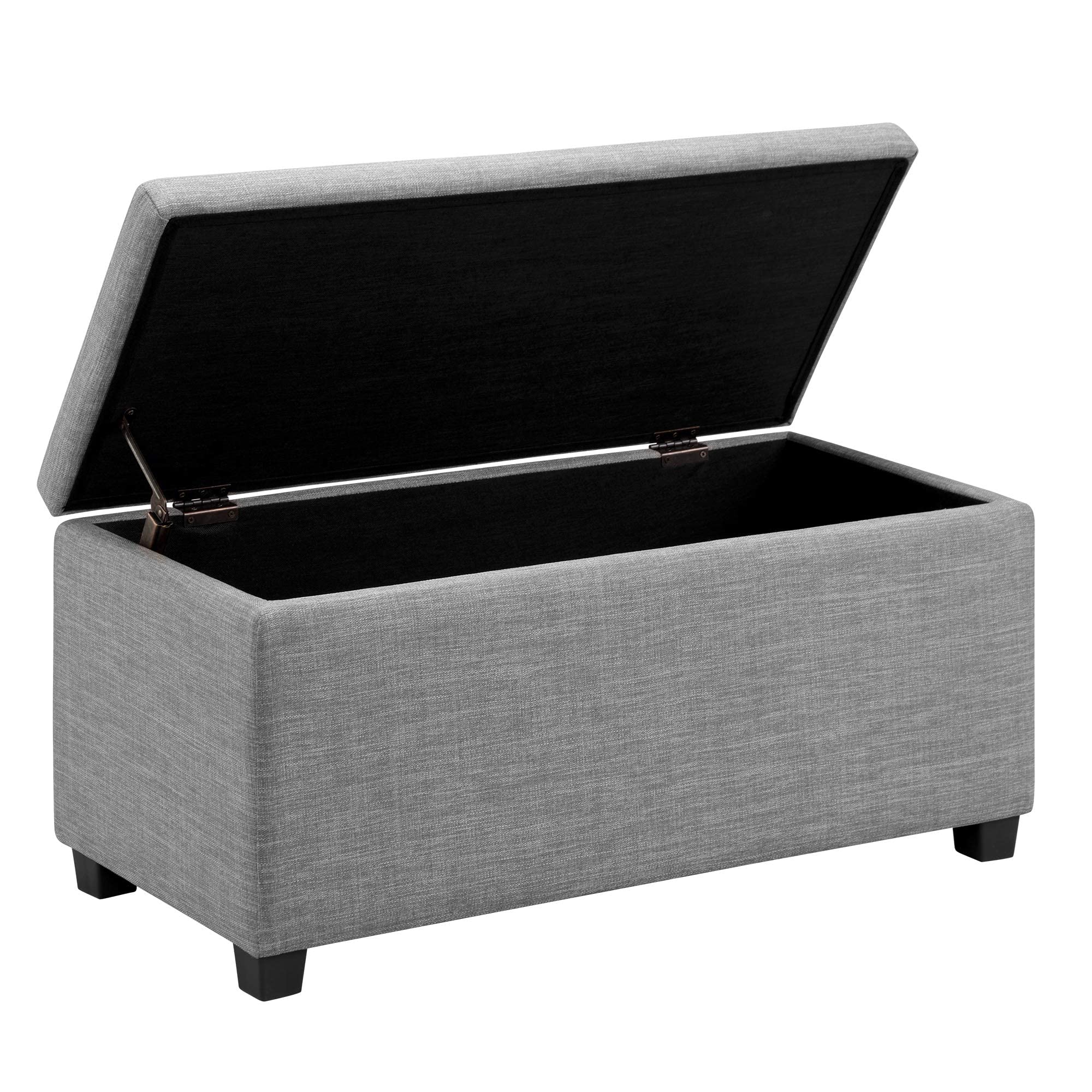 ✴️Amazon Basics Banco rectangular acolchado para entrada con almacenamiento, para dormitorio, pasillo, otomana, aspecto de lino, poliéster, gris claro, 42 x 91 x 43 cm #Publicidad