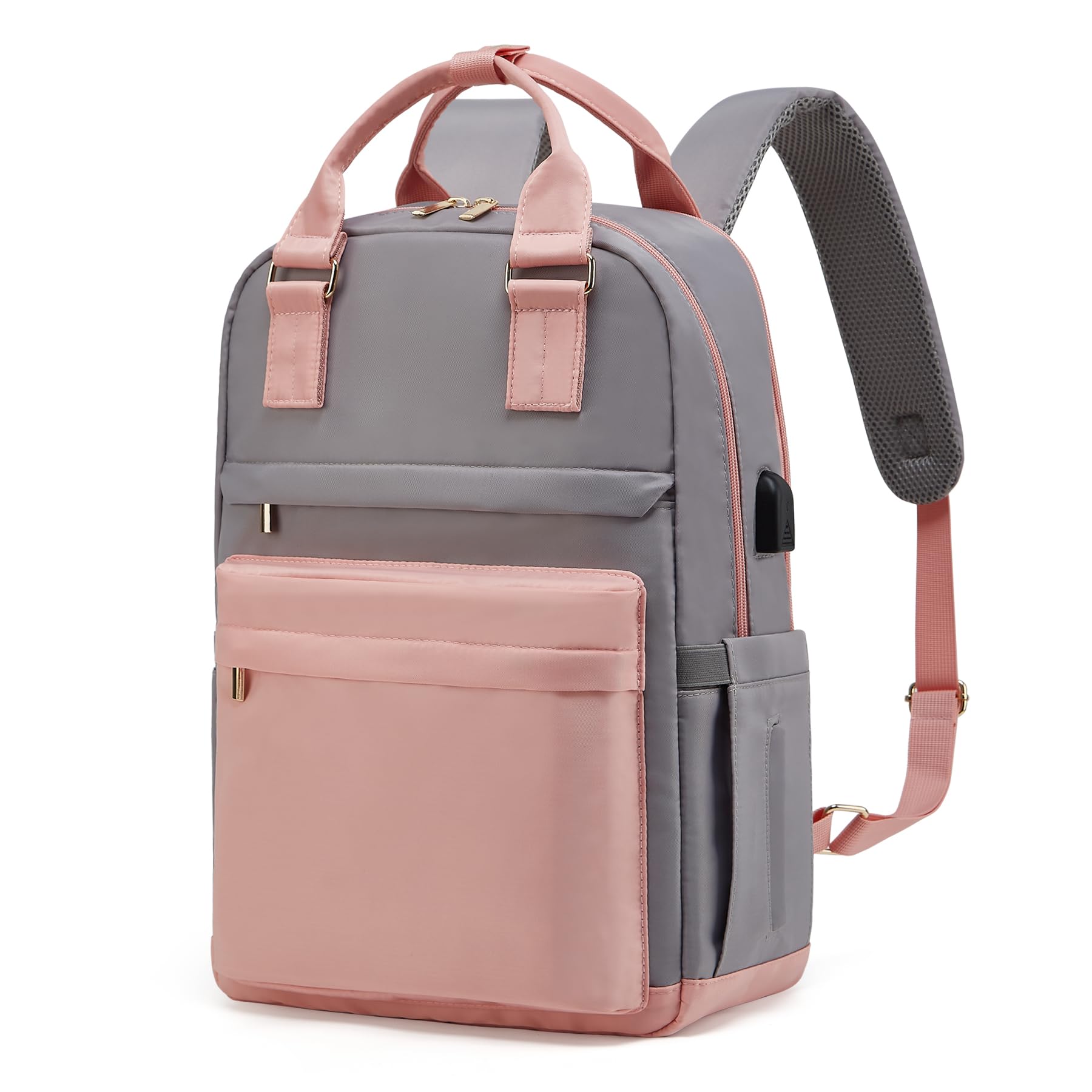 ✴️YTL Elegante mochila para mujer, grande, mochila escolar, mochila de viaje, mochila para mujer, adolescentes, niñas, mochila escolar, bolsa para portátil de 15,6 pulgadas, rosa y gris, 15.6, Rucksack #Publicidad