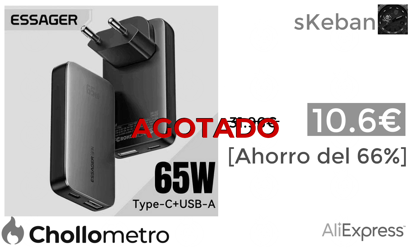 🔹Essager cargador de viaje 65W GaN solo 10.69€❗️🔥 (PVP: +31.96€)