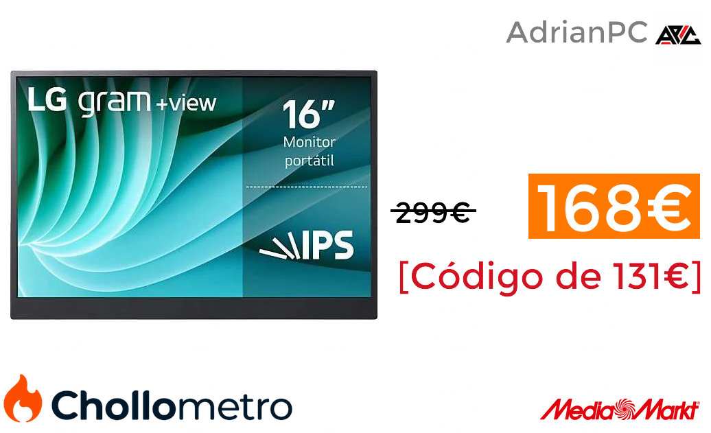 🔹Monitor portátil LG 16" WQXGA solo 168€❗️🔥 (PVP: +299€)