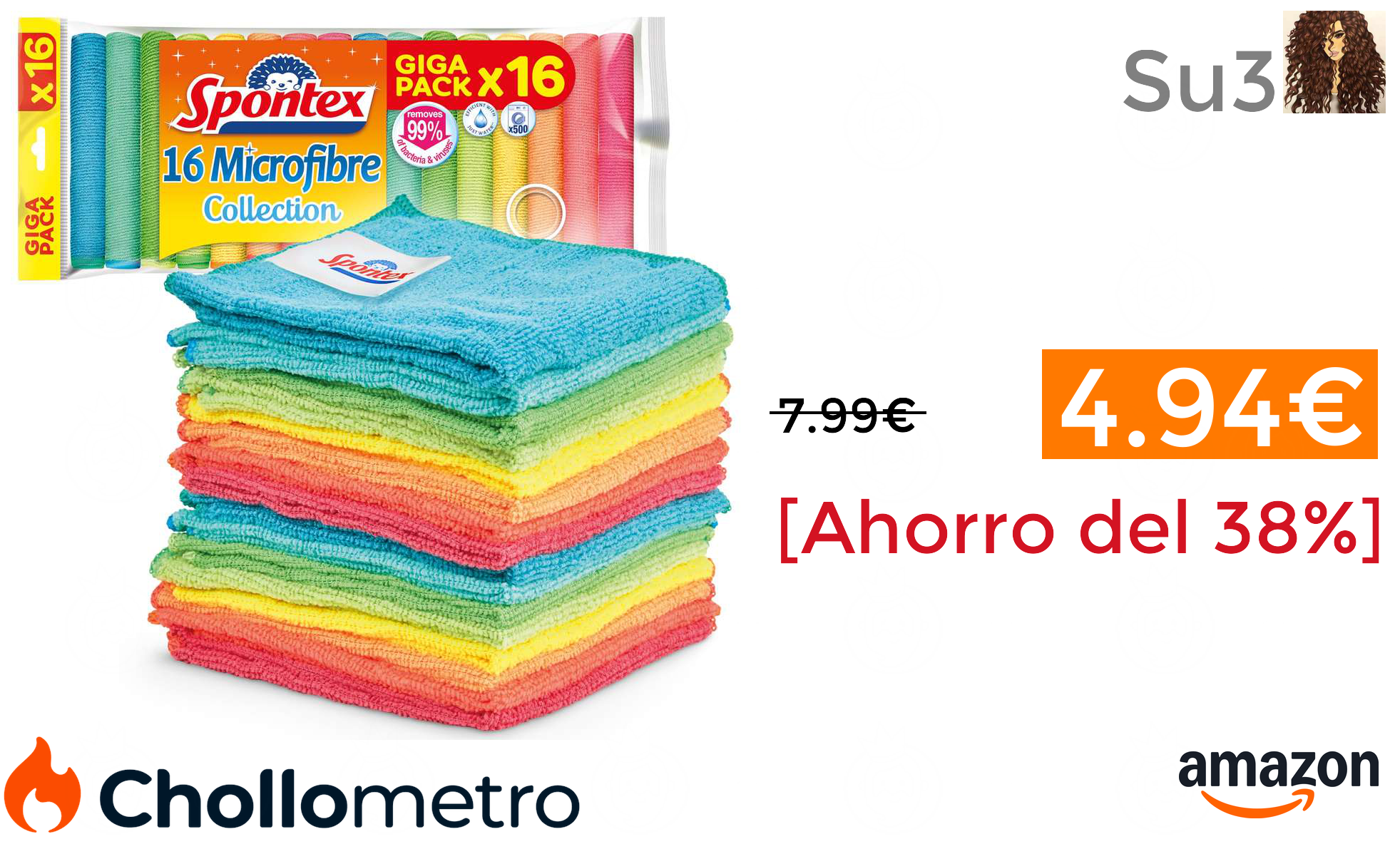 🔹Pack 16 bayetas microfibra Spontex solo 4.94€❗️🔥 (PVP: +7.99€)