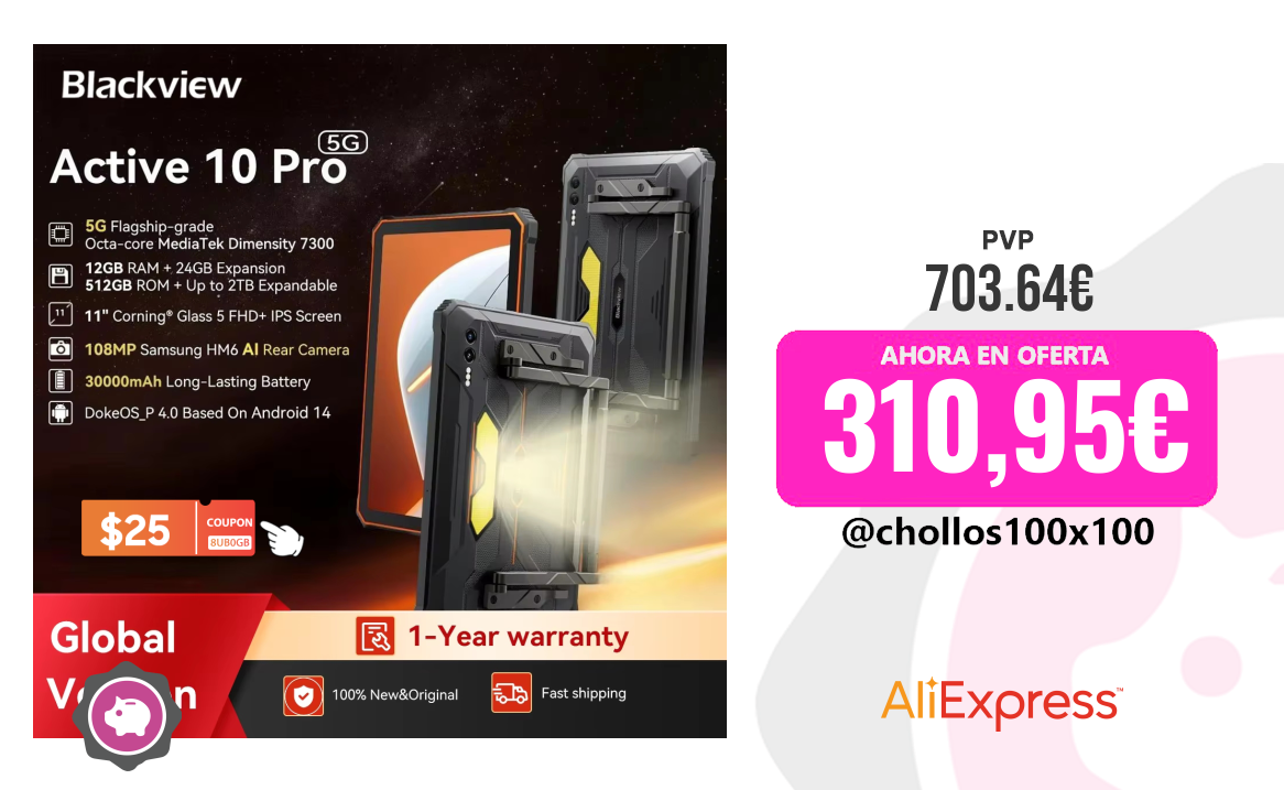 ✨ ¡Descubre la nueva Blackview Active 10 Pro! 🌟 Tableta resistente 5G con pantalla FHD+ de 11". Potente rendimiento con 12GB de RAM y 512GB de almacenamiento. Batería impresionante de 30000mAh y cámara de 108MP para capturar cada momento. 📸💪