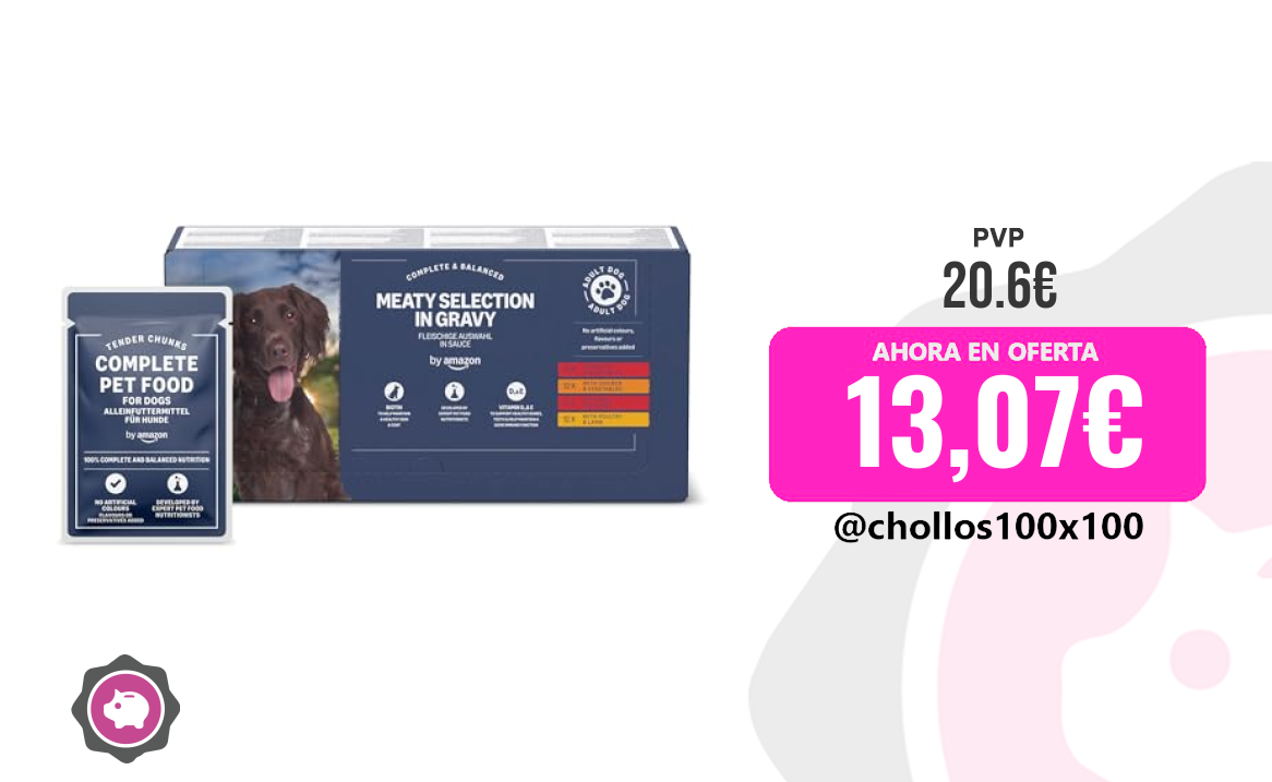✨¡Tu peludo merece lo mejor! Dale una explosión de sabor con la selección de carne en salsa de Alimento Completo by Amazon. 48 deliciosas porciones repletas de nutrientes esenciales, vitaminas y fibra para una digestión feliz y músculos fuertes. ¡Verás cómo brilla su pelaje y su energía se dispara! Dale el sabor que ama y la nutrición que necesita.