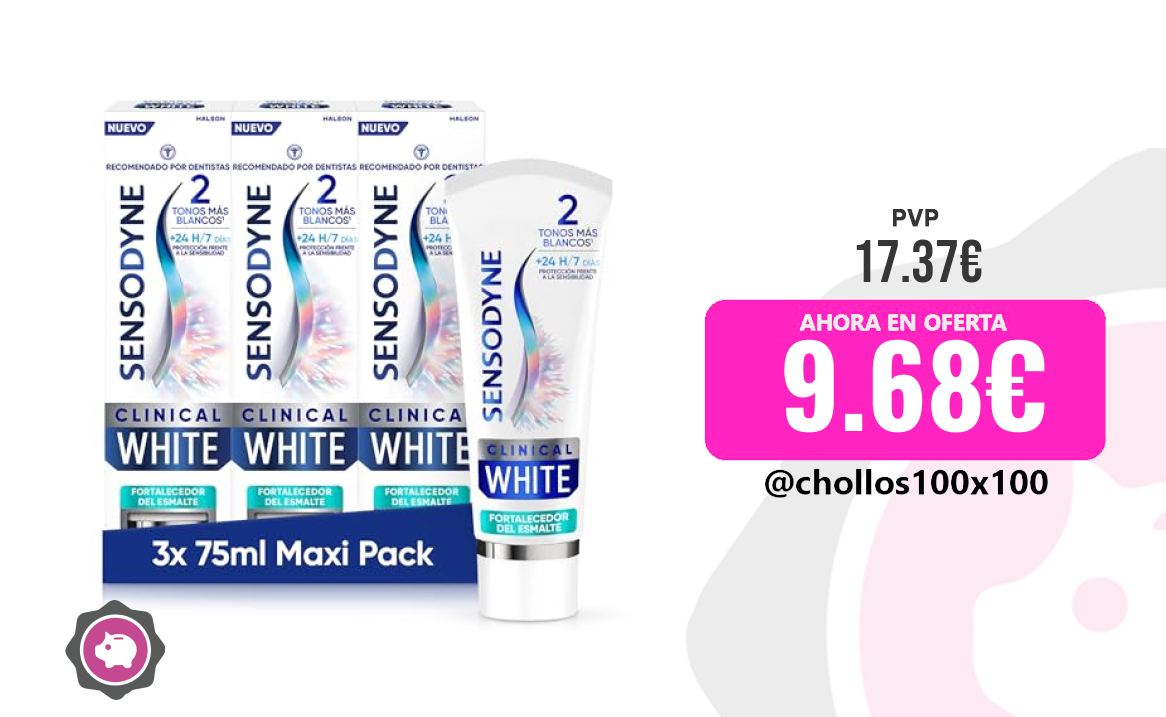 ✨Dientes más blancos y fuertes con Sensodyne Clinical White! Recupera tu sonrisa y olvídate de la sensibilidad dental con este pack. Su fórmula clínicamente probada elimina manchas, protege el esmalte y blanquea hasta dos tonos. Disfruta la confianza de una sonrisa radiante y sin molestias.
