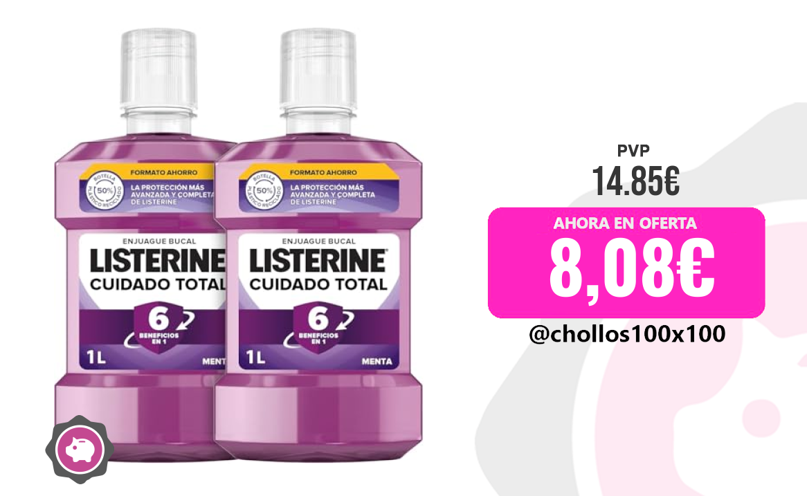 ✅ Listerine Cuidado Total (pack de 2 x 1 L), enjuague bucal con flúor, colutorio bucal con 6 beneficios en 1, elixir bucal para una limpieza bucal completa (El embalaje puede variar)