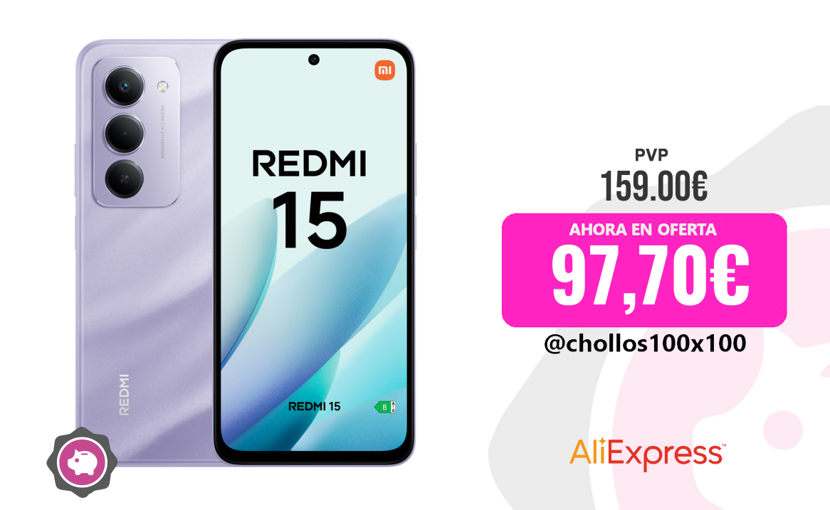✨¡Cazadores de chollos! 📱 Descubre el Xiaomi Redmi 15: pantalla FHD+ de 6.9" y cámara dual de 50 MP. Con su batería de 7000 mAh, ¡nunca te quedes sin energía! 💥 ¡Aprovecha la oferta por solo 97,70€! 🛒