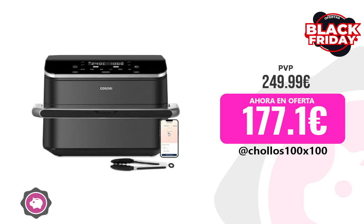 ✨¡Dale un giro a tus comidas con la Cosori Turbo Blaze Chef Edition! 🚀 Prepara platillos crujientes y deliciosos con un 85% menos de grasa, ¡en tiempo récord! ⏱️ Con 6 litros de capacidad, es perfecta para toda la familia. 👨👩👧👦 ¡Consíguela ahora por solo 94,99€ y cocina como un chef sin complicaciones! 😉