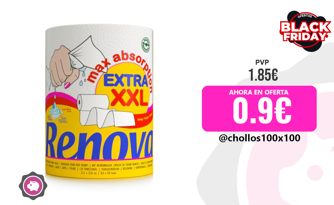 ✨¡Dile adiós a los rollos diminutos! Renova Maxiabsorción es el gigante que necesitas en tu cocina. Su tamaño XXL y triple capa te facilitarán cualquier tarea del hogar, olvidándote de quedarte sin papel en el peor momento. ¡Un rollo y listo, limpieza sin fin!