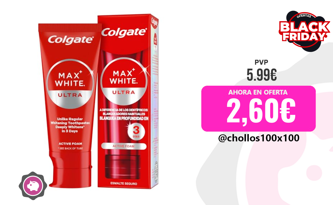 ✨¡Deslumbra con una sonrisa más blanca en solo 3 días con Colgate Max White Ultra Active Foam! 🤩 Su fórmula con oxígeno activo elimina manchas profundas sin dañar tu esmalte. ✨ Disfruta de una espuma rica y cálida que transformará tu rutina de higiene bucal. 😉 ¡Dale a tu sonrisa el brillo que se merece!