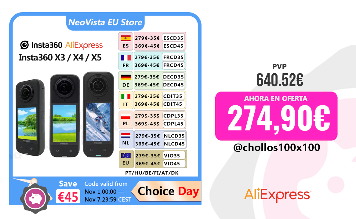✨¡Libera tu creatividad! 🚀 Captura el mundo en 360º con la Insta360 X3/X4/X5, ¡directo a tus manos desde la UE! 🇪🇺 Sumérgete en vídeos 5.7K HDR y fotos de 72MP, todo a prueba de agua. 💦 ¡No te pierdas ni un detalle!