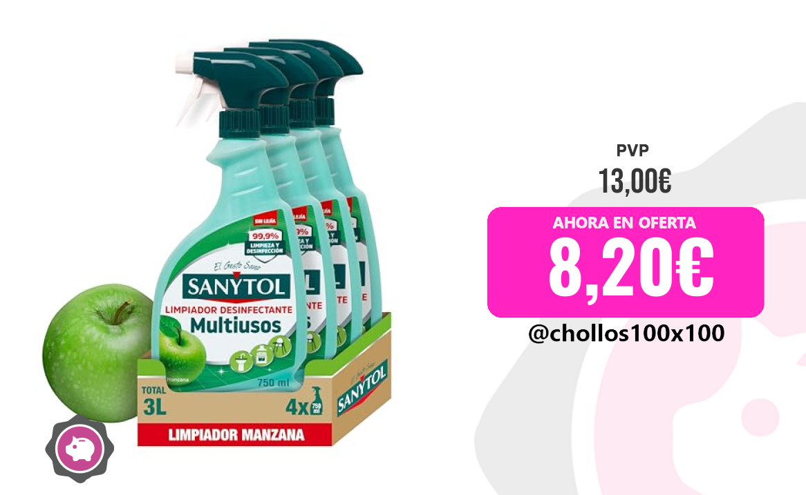 ✨¿Cansado de la limpieza que no acaba con todo? Con Sanytol, la frescura de la manzana se une a una limpieza profunda que elimina el 99,9% de gérmenes, bacterias y virus, ¡adiós preocupaciones! Disfruta de un hogar fresco y seguro, apto para toda la familia y superficies, sin lejía ni malos olores. ¡Sanytol te cuida a ti y a tu hogar!