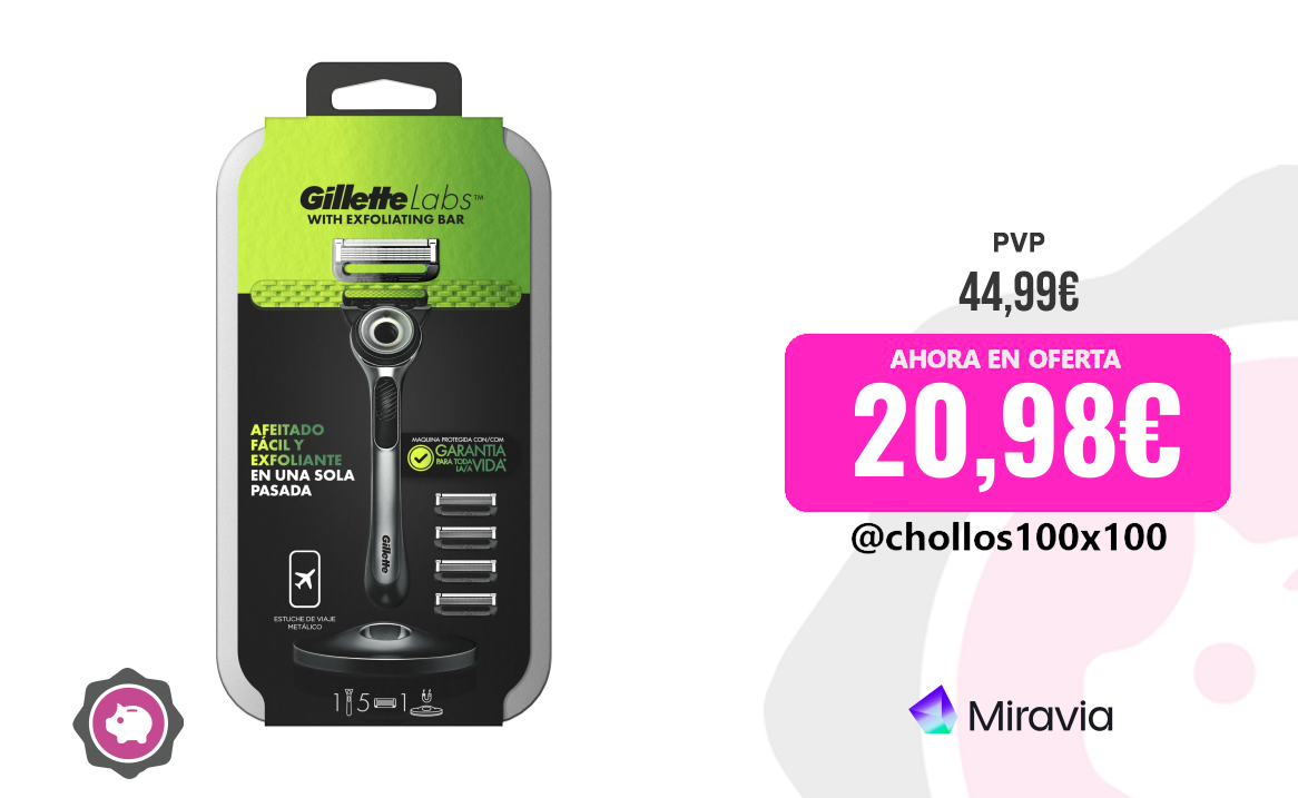 ✨¡Aprovecha esta oferta increíble! 🌟 La máquina de afeitar GilletteLabs con barra exfoliante y estuche de viaje es perfecta para ti. Con 5 recambios, ¡suave y efectiva! 💈 ¡No dejes pasar este precio de 20,98€! 🛒