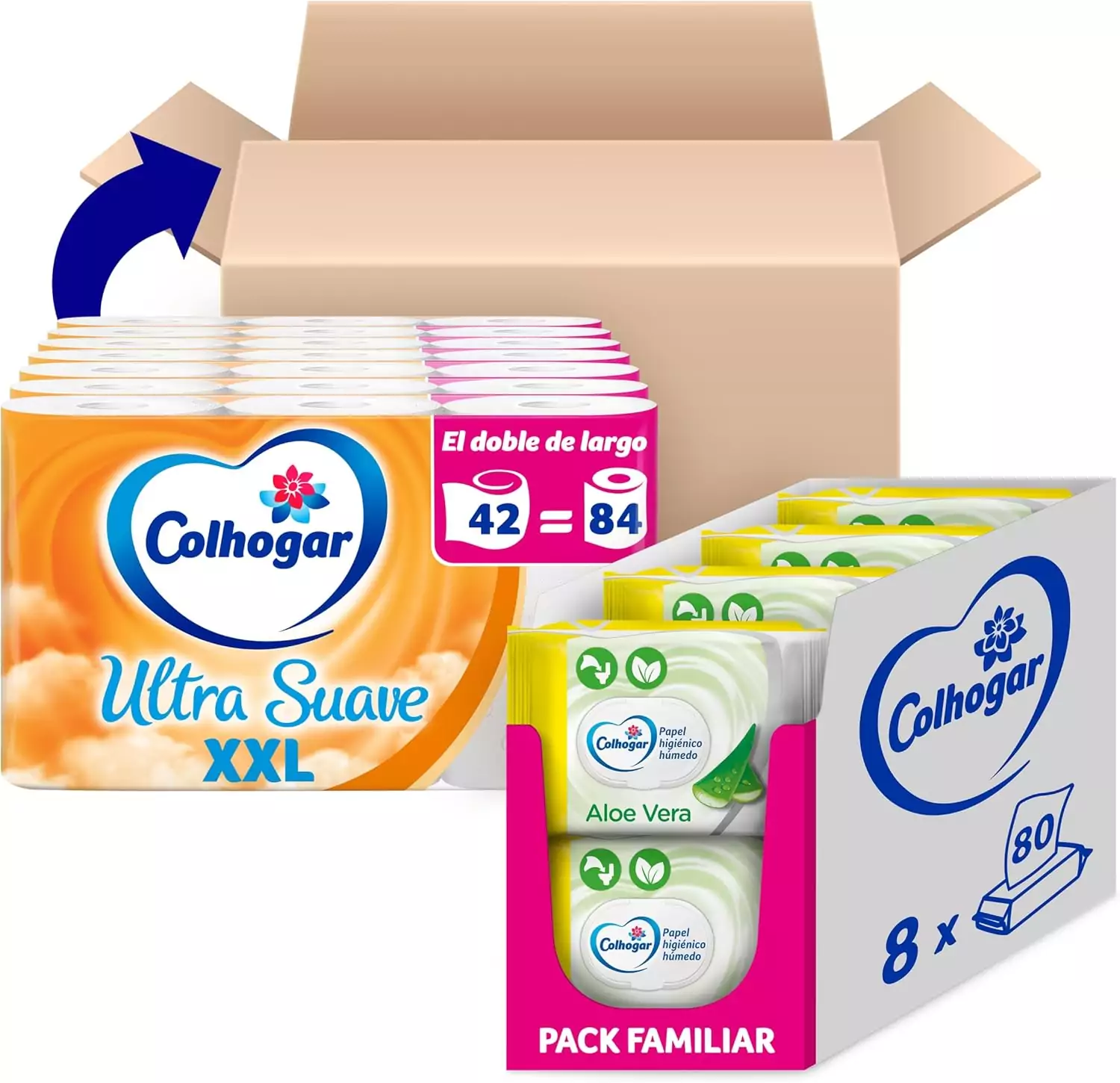 Pack Colhogar 42x rollos de papel higiénico ultra suave XXL + 640x Toallitas Aloe Vera🔥 #Amazon.es