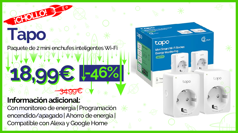 💥 🔉 Tapo - Paquete de 2 mini enchufes inteligentes Wi-Fi #Amazon