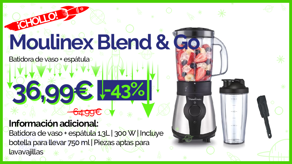 💥 🔉 Moulinex Blend & Go - Batidora de vaso + espátula | OFERTA FLASH #Amazon