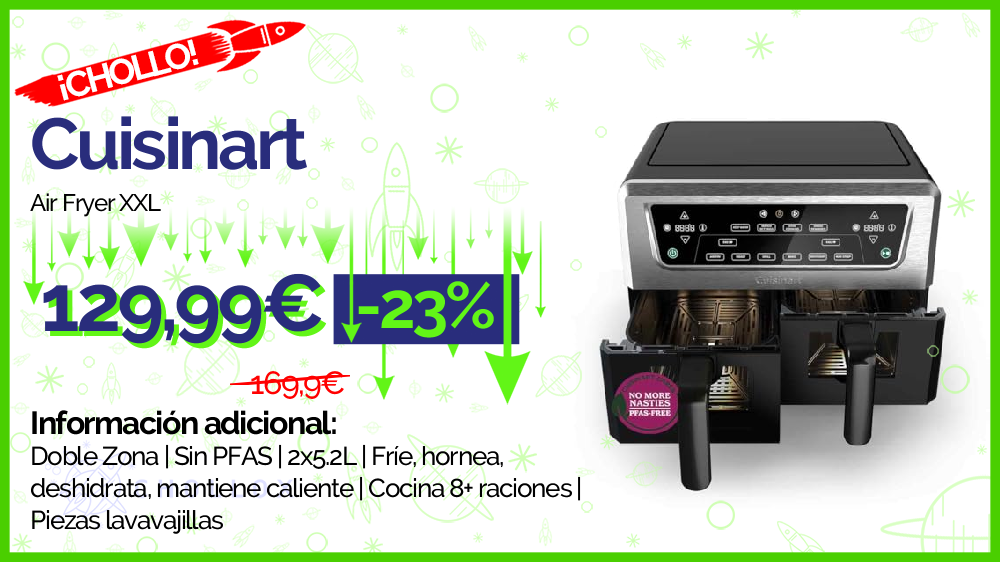 💥 🔉 Cuisinart Air Fryer XXL Doble Zona | Sin PFAS | 2x5.2L | Fríe, hornea, deshidrata, mantiene caliente | Cocina 8+ raciones | Piezas lavavajillas #Amazon