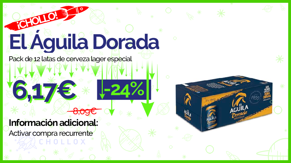 💥 🔉 El Águila Dorada - Pack de 12 latas de cerveza lager especial #Amazon